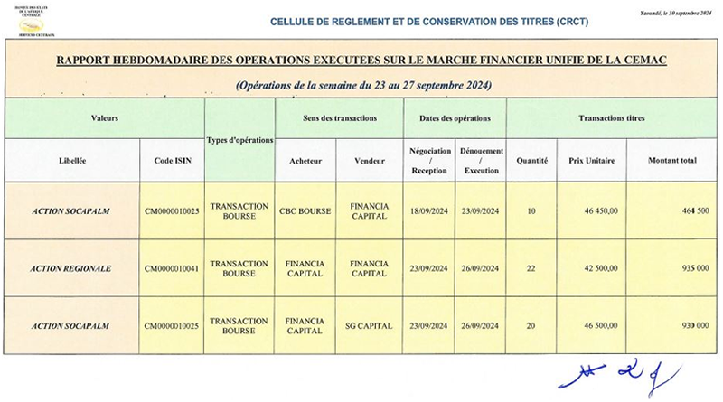 Lire la suiteTransactions réalisées dans la semaine du 23 au 27 septembre 2024 Le rapport hebdomadaire des opérations sur le marché financier