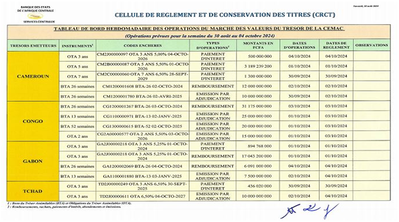 Par communiqué du 14 octobre 2024, le Directeur général de la Bourse des Valeurs Mobilières de l’Afrique Centrale (BVMAC), informe